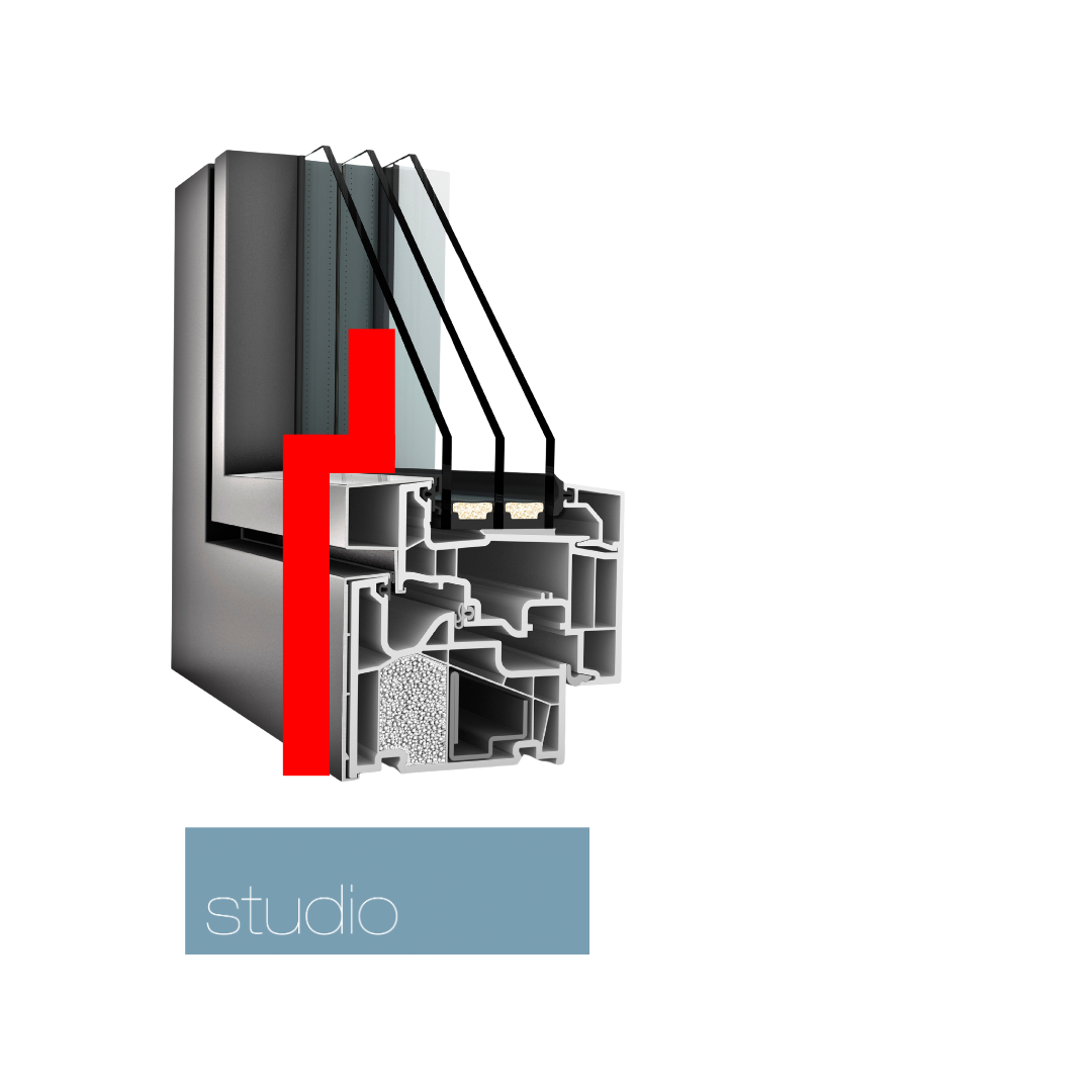 Le design Studio est la gamme la plus avant-gardiste et personnalisable d'Internorm, traitant la fenêtre comme un élément de design architectural à part entière. Ses lignes sont délibérément fines et minimalistes, avec des options d'intégration poussées (encadrement invisible) pour un rendu épuré au maximum.
