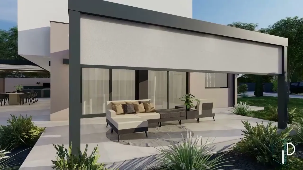 Cette pergola à toiture plate a été pensée pour ceux qui souhaitent vivre dehors avec le même niveau de confort qu'à l'intérieur.