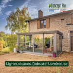 La Véranda Armonia de Concept Alu redéfinit l'esthétique de l'agrandissement d'habitat avec ses lignes fluides et son élégance sobre.