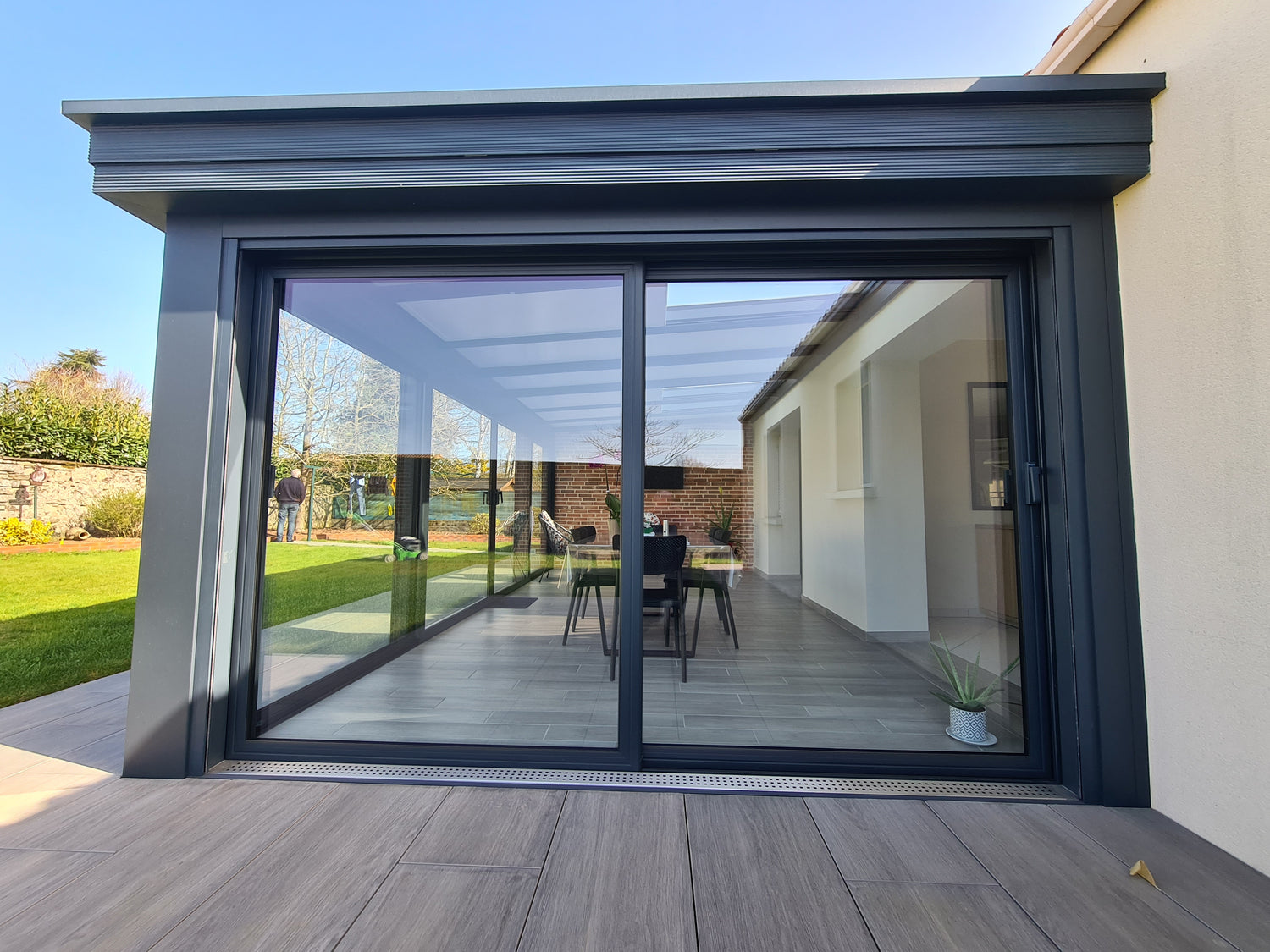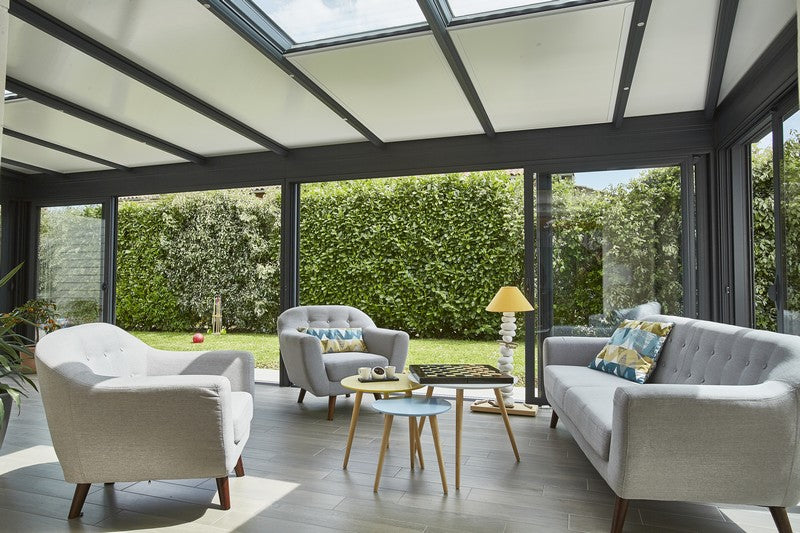 Contrairement aux modèles traditionnels, sa structure aux profilés fins et son design à toit plat (ou aspect toit plat) permettent une transition invisible entre votre demeure actuelle et ce nouvel espace.